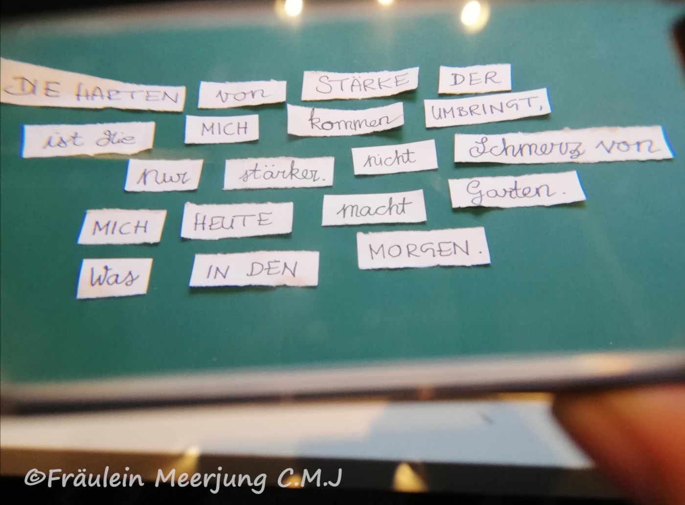 Wir kennen sie doch auch alle. Motivationssprüche. Durchhalteparolen. Leicht daher gesagte Zitate, die bewirken sollen, dass wir uns besser fühlen. Ich habe ein wenig das Gefühl, dass sie mir gerade wenn es in Richtung Weihnachten und Jahreswechsel geht, besonders häufig begegnen. Auf Kalendern. Oder auf Blech- oder Holzschildern. Gerne bei Nanu Nana oder bei Ikea in der Dekoabteilung. Damit man sie sich in Küche/Schlafzimmer/Wohnzimmer/Toilette aufhängt. So mit Blümchen und Schmetterlingen drumherum.